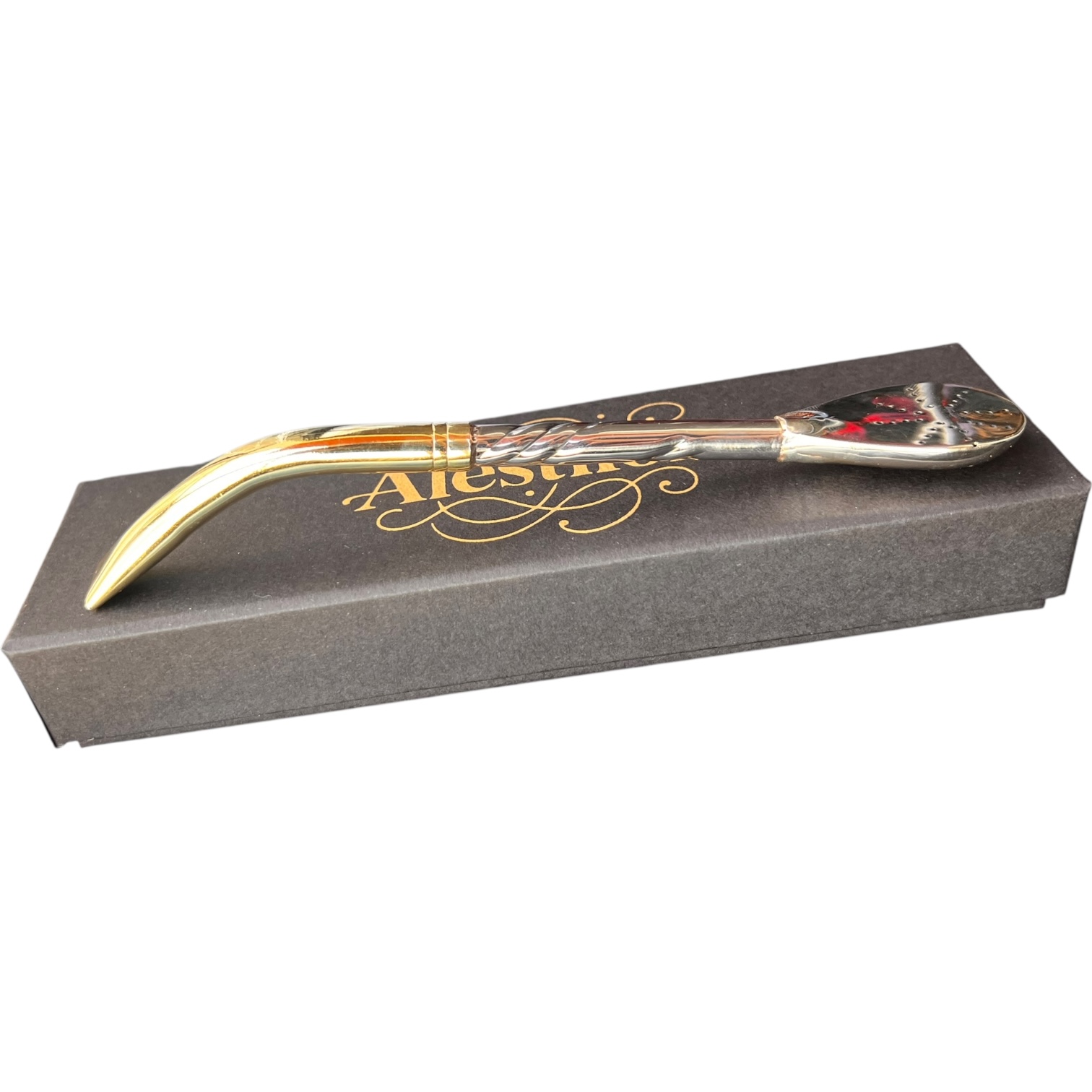 La bombilla pico de loro premium de Alestilok es la elección perfecta para los amantes del mate que buscan calidad y estilo en cada sorbo. Fabricada en alpaca y bronce, su diseño cincelado no solo aporta elegancia, sino que también garantiza durabilidad y resistencia. Con un largo de 18/19 cm, + – 1cm, se adapta cómodamente a cualquier recipiente, permitiendo disfrutar de la infusión de manera óptima.