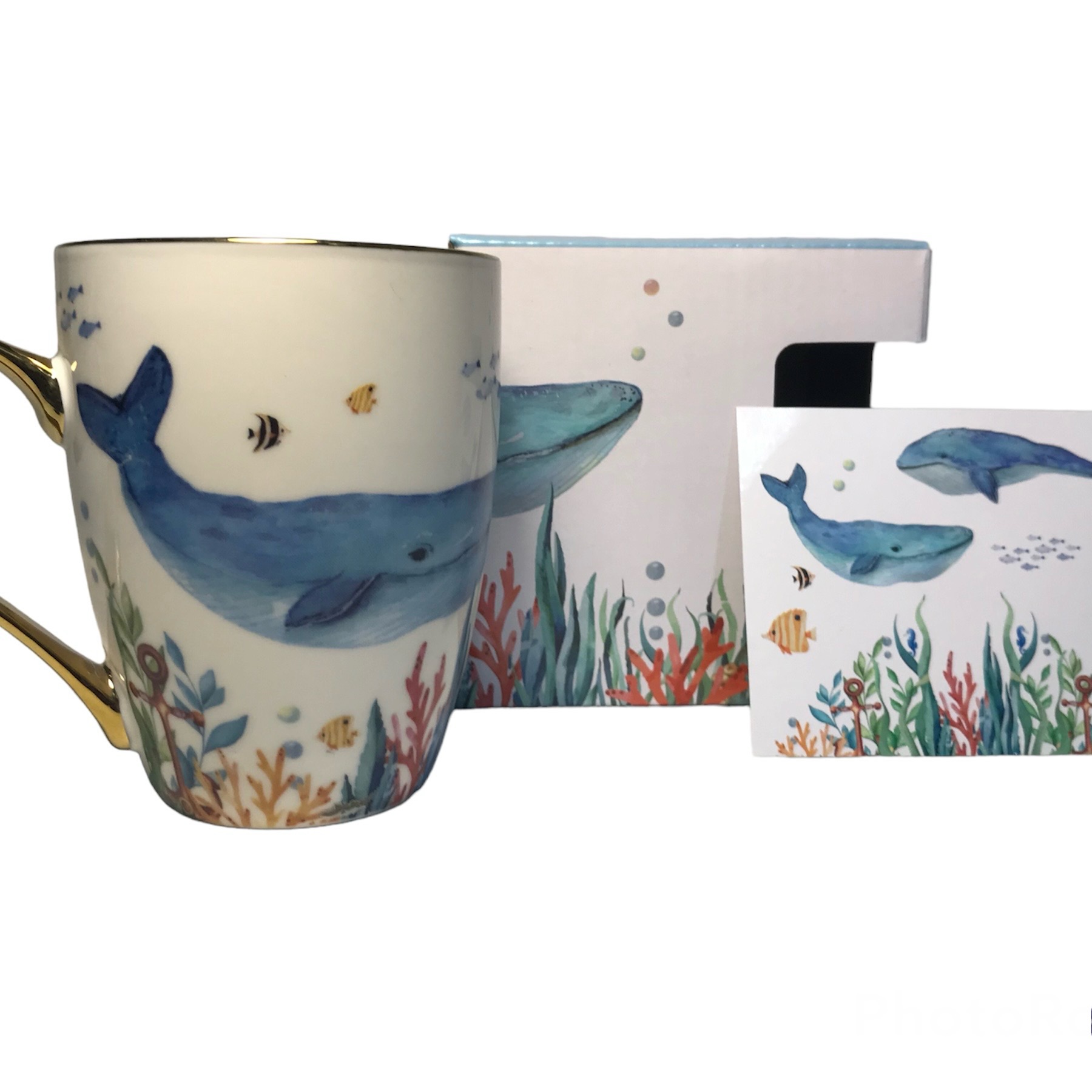 Taza colección Océano, caja tarjeta regalo frases Ballena