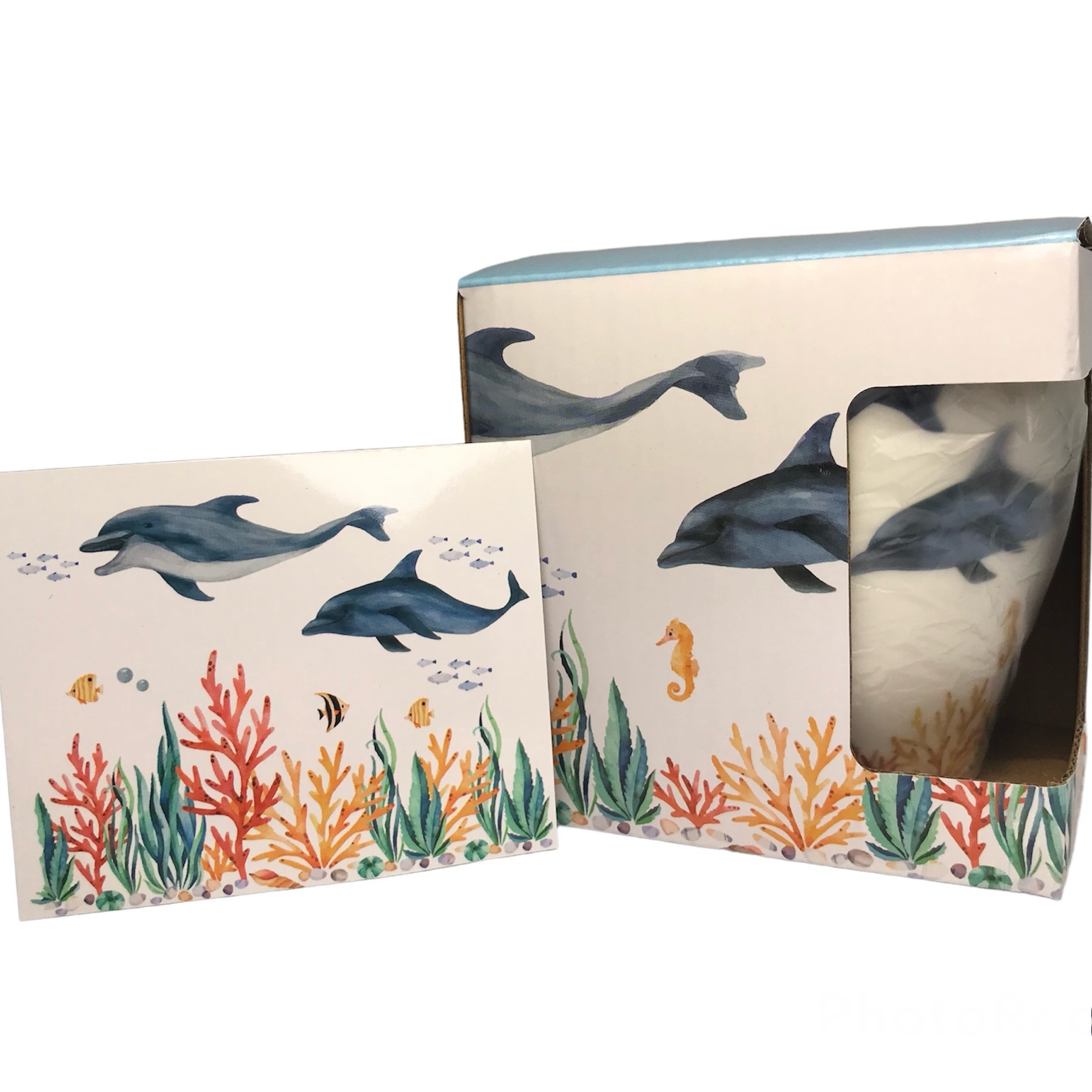 Taza colección Océano, caja tarjeta regalo frases Delfín