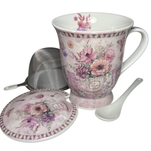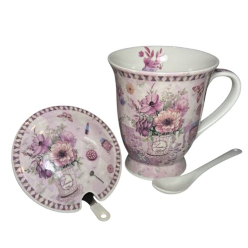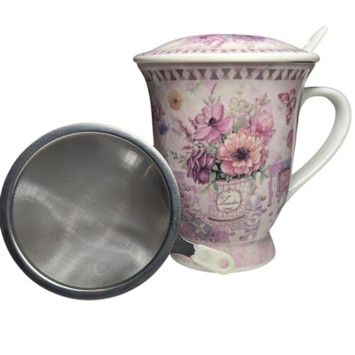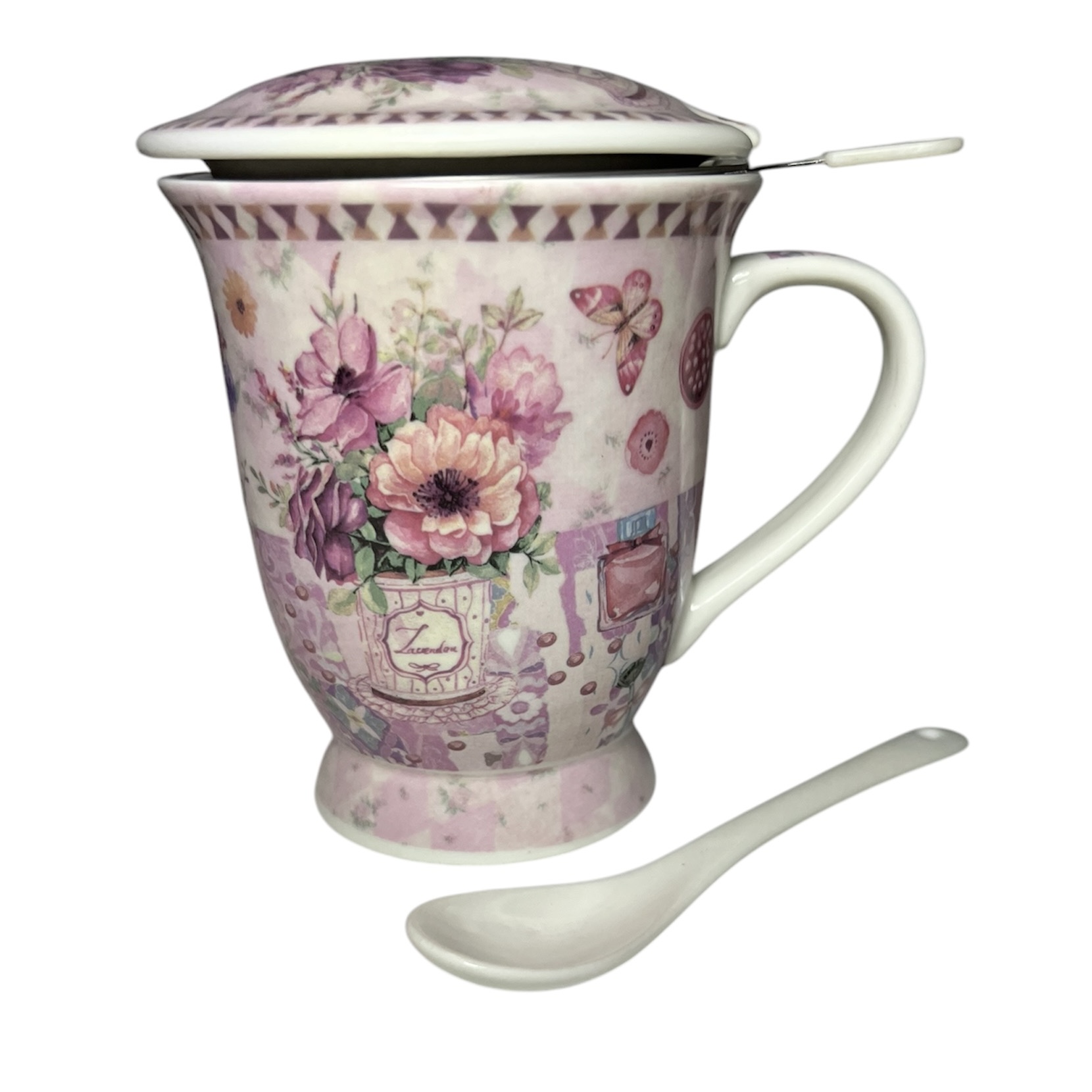 Taza con infusor de té diseños elegantes con cuchara y tapa Lavender