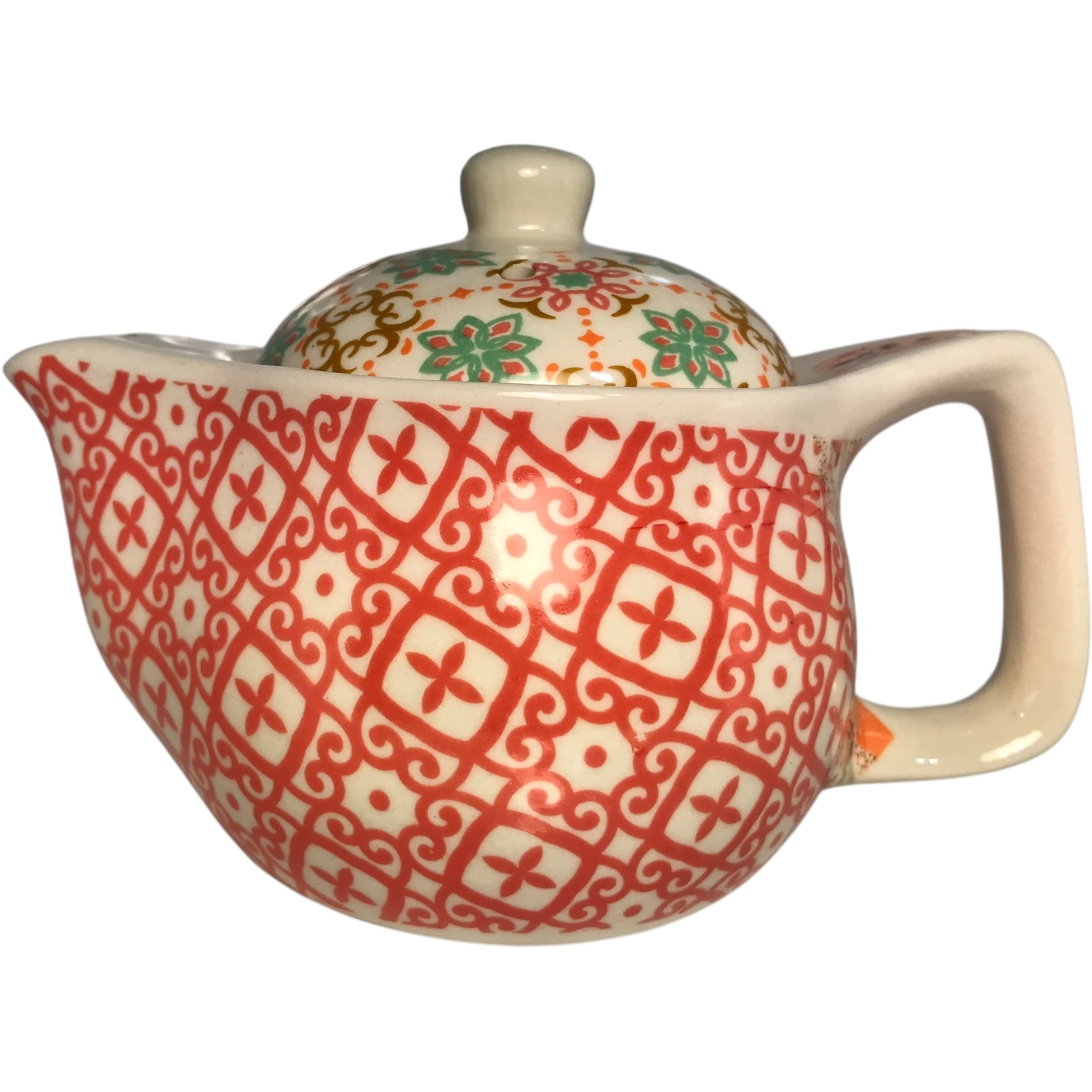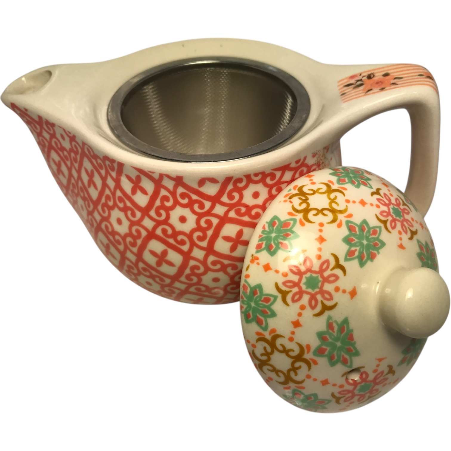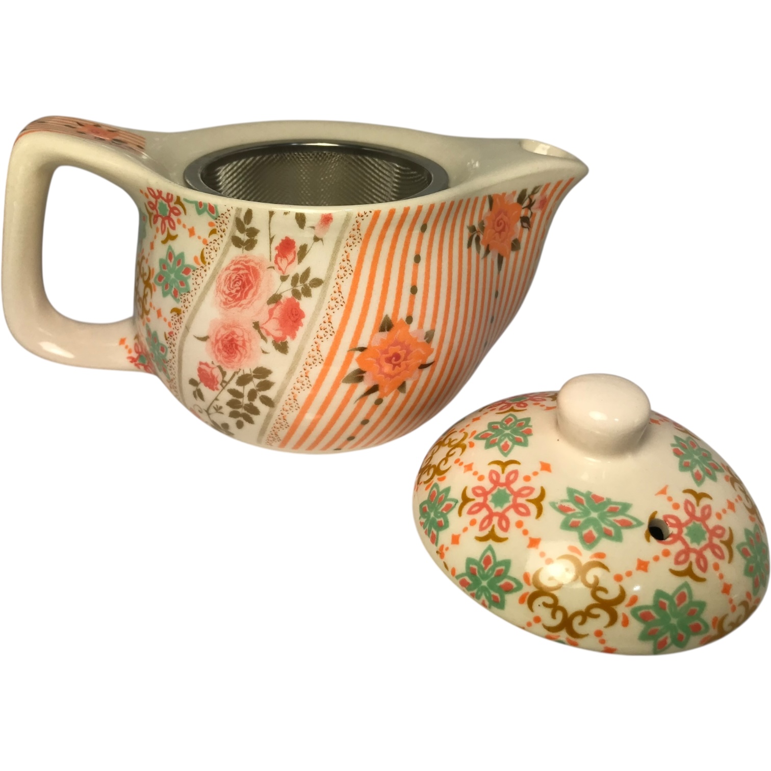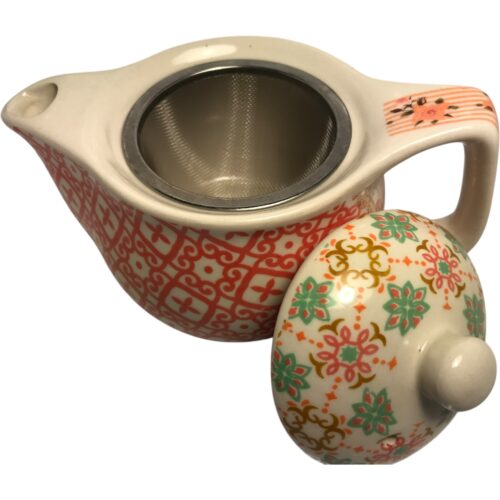 Tetera de porcelana con infusor de acero inoxidable 380cc Flor Naranja